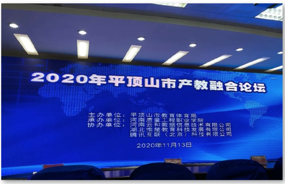 为推进产教深度融合,学习交流平顶山市各职业院校在产教融合方面的成功做法和典型案例。11月13日,由平顶山市教育体育局主办,河南质量工程职业学院承办,河南云和数据信息技术有限公司、湖北惟楚教育科技发展有限公司、腾讯互联(北京)科技有限公司协办的平顶山市“产教融合”论坛在河南质量工程职业学院举办。