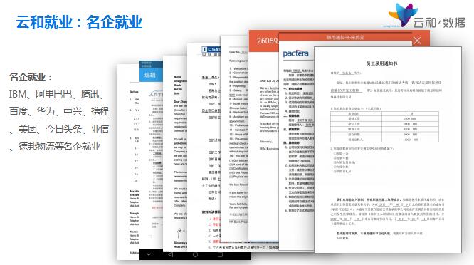 云和真的能就业:云和数据拥有就业企业联盟几千家,定期会做名企双选会,上市企业,500强企业定期到云和做企业直招。就业不是云和的目的,云和的目的是让每一位学员短期内高薪就业,不但要就业还要名企就业,更要高薪就业,不同于传统培训公司不能很好就业的做法,云和说到做到。