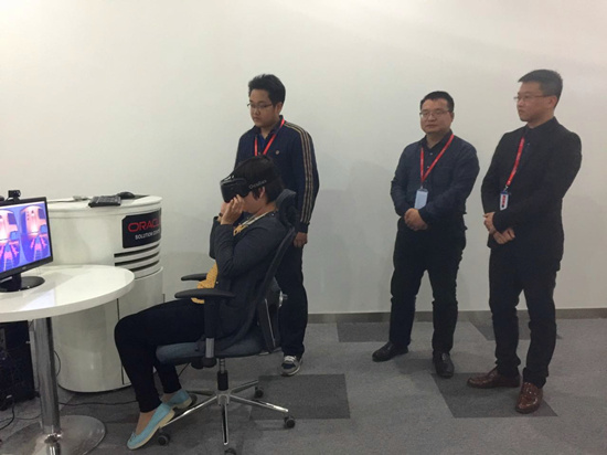 在参观完企业并体验过云和数据公司独立研发的VR(虚拟现实)和AR(增强现实)项目后,伦总监陪同张主任一起前往云和数据深度校企合作院校——河南工业贸易职业学院进行实地考察。